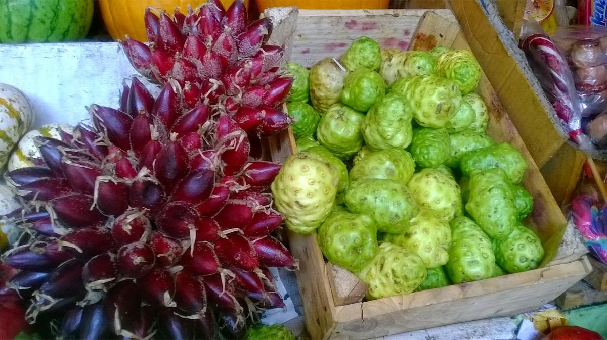 Conocí nuevas frutas, el cocohuixtle (izq.) y el noni (der.), que ya lo había escuchado, en especial el jugo de noni, el cual se ha vuelto famoso, pero es la primer vez que lo miraba. Estas son el tipo de cosas que me gusta al visitar los mercados, nunca sabes que es lo que te puedes encontrar.