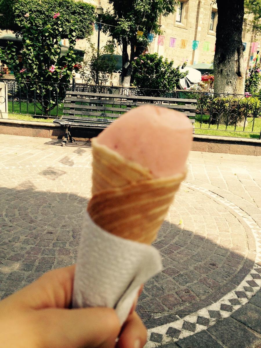 No todo fue tan malo en Tlaquepaque, el recorrido que hicimos en la mañana, nos gusto mucho, dimos un paseo por la plaza que tienen, nos comimos una nieve de garrafa. Yo la comí de mamey.