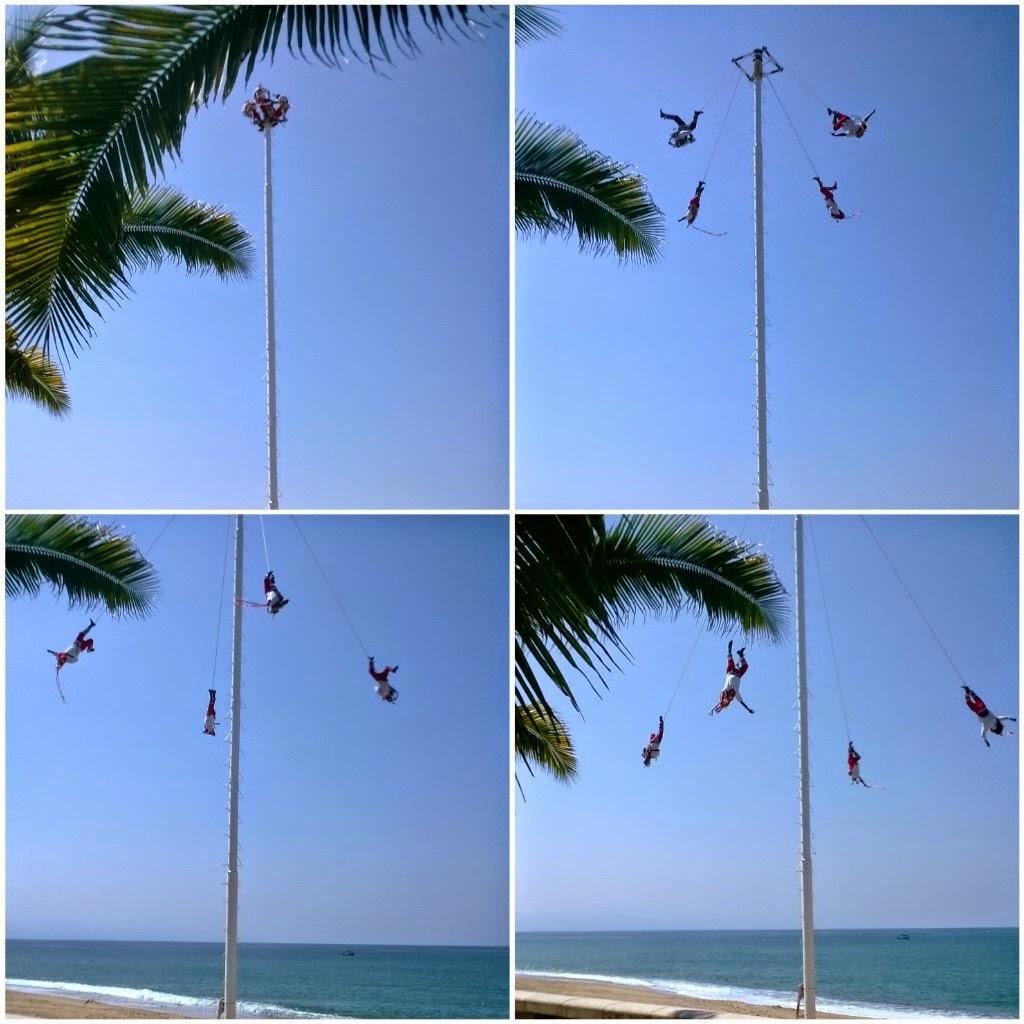 En Tlaquepaque no nos toco ver el ritual de "Los Voladores de Papantla" aquí si y con el mar de fondo.