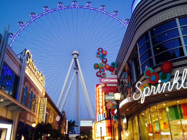 http://www.sprinkles.com/Para mi suerte justo enfrente de Sprinkles Cupcakes se encontraba Ghiradelli Chocolate. De fondo tenemos el High Roller, unas de las nuevas atracciones de Las Vegas. Puedes dar un paseo teniendo una hermosa vista de toda la ciudad. También puedes rentar una cabina completa, en cada cabina caben hasta 40 personas, incluso la promocionan para fiestas y bodas. Sí que sería algo romántico casarte así, claro si no le temes a las alturas, acepto que yo un poco.