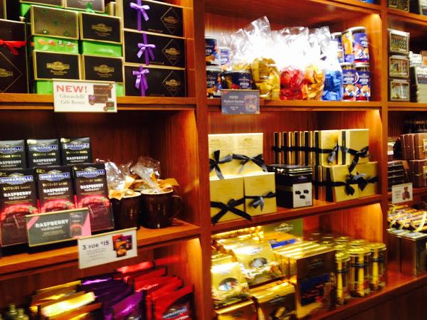 En Ghirardelli, esperando mi chocolate caliente para acompañar los cupcakes (¿dulce más dulce?. lo se, estoy de vacaciones y mi esposo me ayuda con las calorías, las dividimos entre los dos).