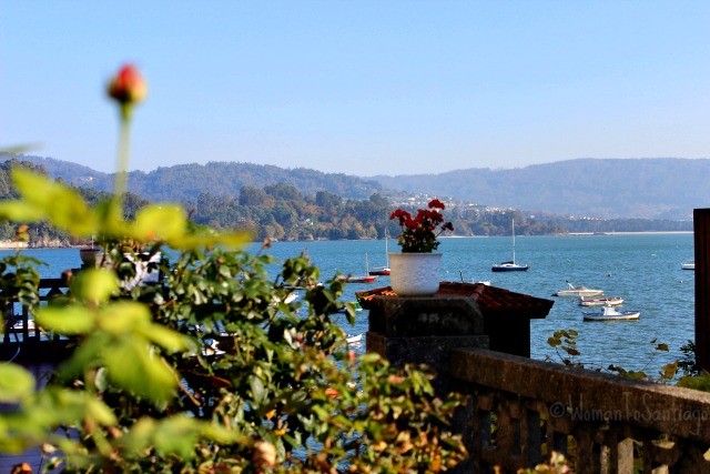 Recuerdo nuestro paseo perfectamente con casi mis cinco sentidos. Bajamos con mucha hambre al puerto donde aún me esperaba mi mochila sobre un taburete que miraba a la ría. Allí nos sentamos, y allí mismo el afable tabernero nos leyó de memoria la carta de productos de la tierra que para hoy tocaba. Pescado de la ría, como no podía ser de otro modo, ¡casi nada para empezar! Me acuerdo perfectamente cuando nos dijo que estaba aposentada sobre el mismo lugar y taburete que Almódovar utilizaba para descansar, abstraerse, retomar fuerzas y seguir con el rodaje de su última película, que en aquellos días iba a titularse Silencio.