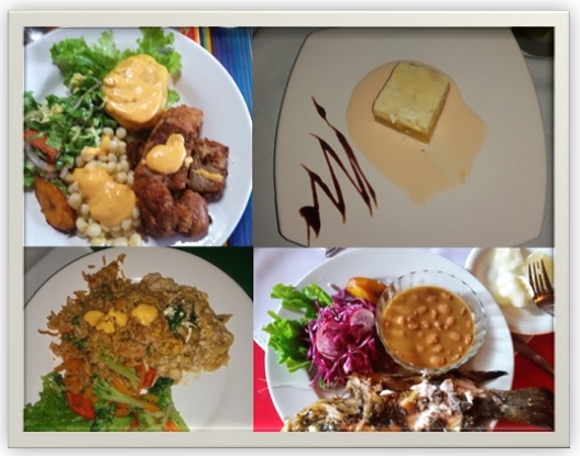 Hay muchas personas que van solo para comer. Los platos son sanos deliciosos. Entre lo que comimos estaba la fanesca tradicional, sopa de pollo, fritada típica de Ibarra, y un pescado hecho en leña, todo, todo sabroso. Ellos nos cuentan que la comida es orgánica, cosechada en sus mismos huertos o comprada a personas del sector.