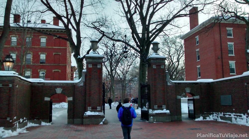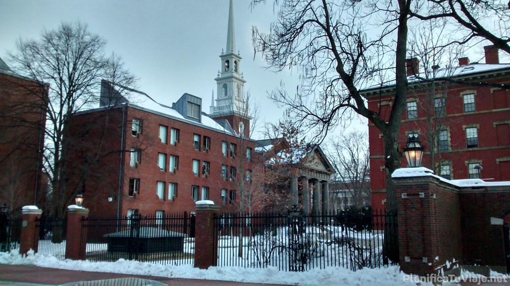 Tomamos la Red Line hasta la estación “Harvard“. Bajamos y caminamos algunos metros para ingresar al Harvard Yard y nos quedamos enloquecidos! Todo nevado y esos edificios clásicos que nos hicieron sentir que estábamos en una película.