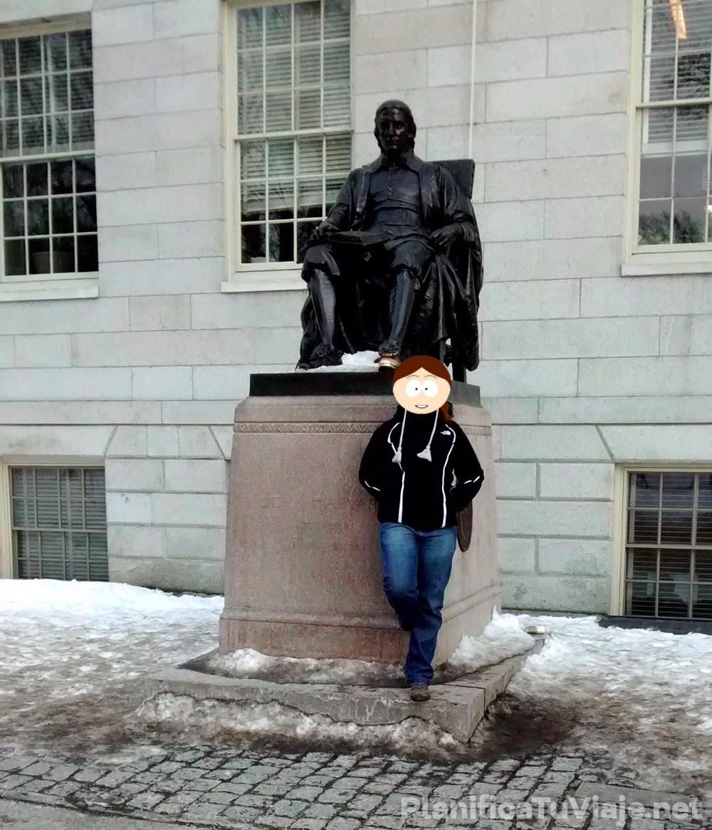 En medio del recorrido nos cruzamos con la estatua de John Harvard, clérigo del que obtiene el nombre a la famosa universidad. Notamos que el pie izquierdo del señor estaba lustrado y brillante, consultamos con gente que pasaba y nos comentaron que frotarle el pie a don Harvard trae suerte para los estudiantes. Yo en ese momento estaba a 4 materias de recibirme así que le saqué brillo al pie de la estatua y les cuento que trajo resultados: al volver del viaje metí una materia en verano y en el primer cuatrimestre metí las 3 restantes y obtuve mi preciado título de Licenciada en Sistemas de las Organizaciones de la FCE de la querida UBA (si, larguísimo el nombre de mi carrera).