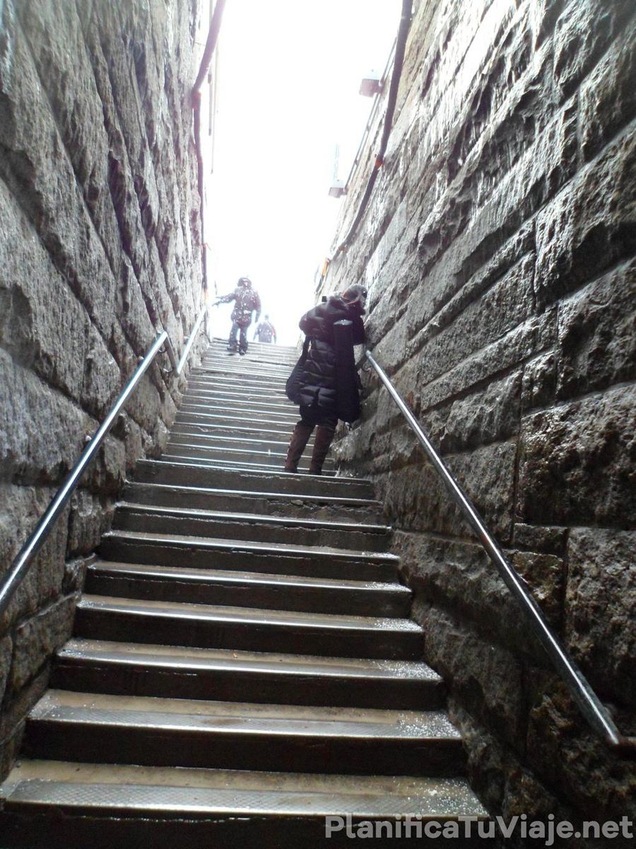Como a la mitad del recorrido se larga a nevar más fuerte y con más viento que antes. Los dos teníamos camperas negras pero después de unos minutos quedaron blancas. Lo que molestaba de este clima era la poca visibilidad, todo se veía borroso.
