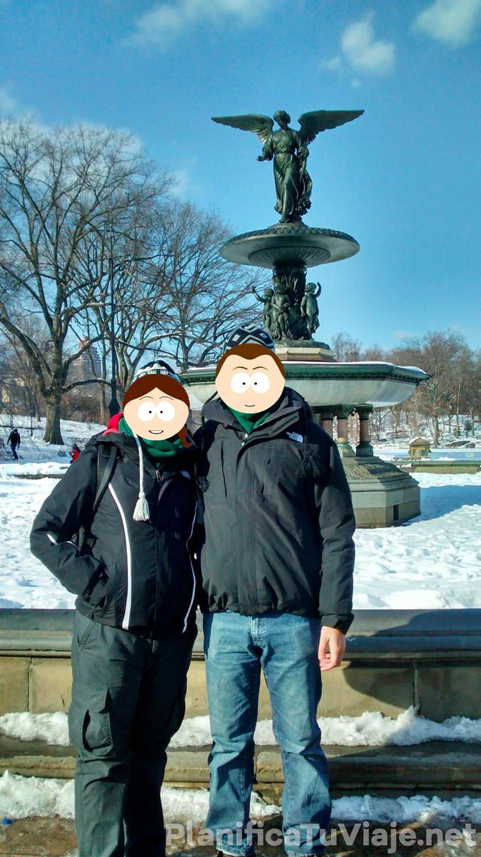Estuvimos fácil 3 horas en el Discovery Times Square, se acercaba la hora de pegar la vuelta. Volvimos caminando por el Bryant Park donde encontramos la fuente congelada. Estaba así 3 días después de la nevada grande, así que imagino que los días previos estaba aún peor.