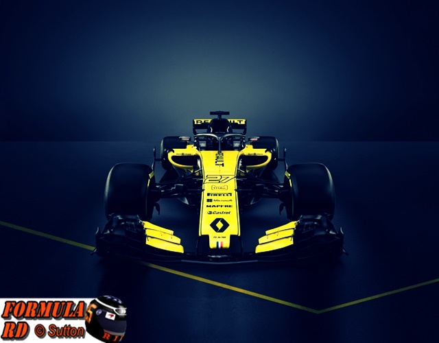 En términos de color, el Renault de 2018 es claramente diferente del de 2017: la marca francesa ha elegido mucho más negro. Sin embargo, la nariz del automóvil es de color amarillo brillante. Como ya se anunció en una etapa anterior, Mapfre es patrocinador, al igual que Estrella Galicia. Los logos de ambas marcas españolas son claramente visibles.