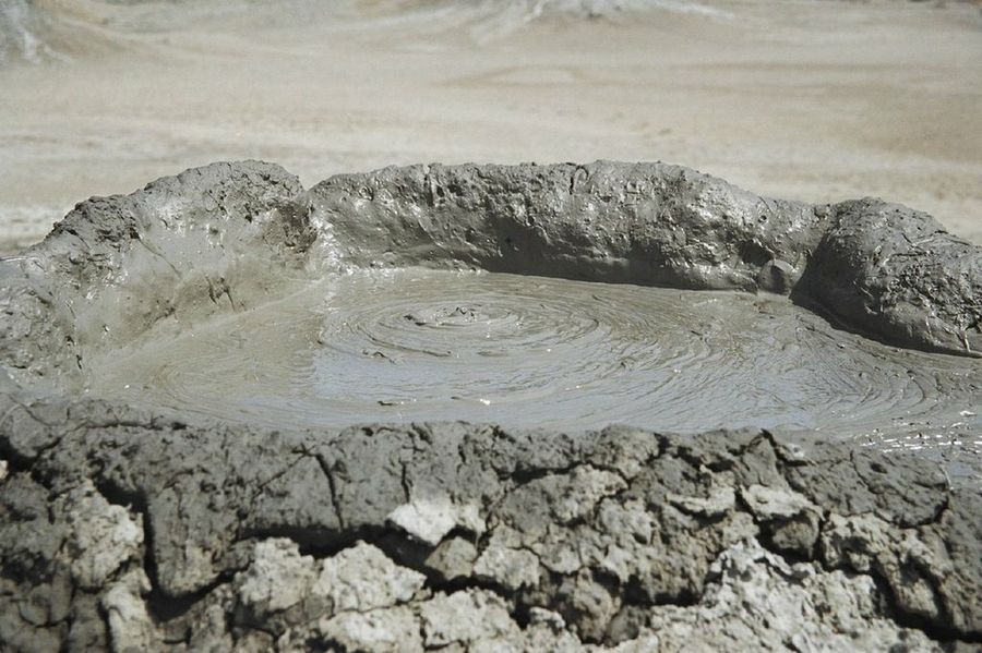 Caminar entre los cráteres de lodo, con un mar de tierra entre el horizonte y el objetivo de nuestra cámara de fotos, es como pasear por la superficie de la Luna. Los volcanes de lodo son el resultado de emanaciones de gas en un suelo inerte que forman volcanes en miniatura de los que brota arcilla hidratada del mismo modo que lo hace la lava en los verdaderos volcanes. Al contrario que su tamaño, la potencia con la que se forman puede ser soberbia. Ha habido casos en los que se han expulsado llamas a varios metros de altura.