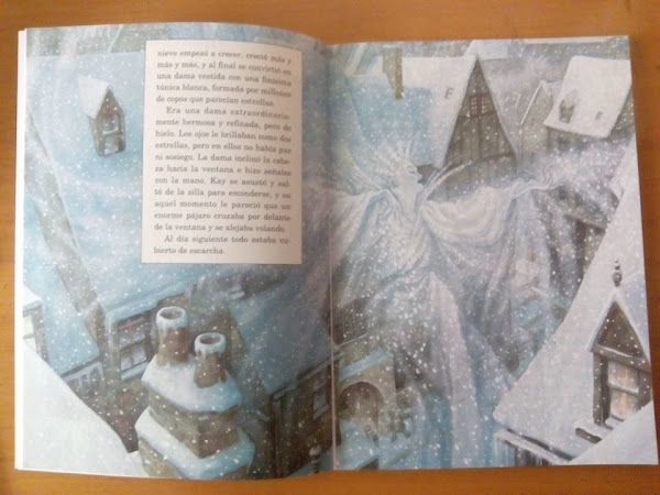 Con este libro he hecho una gran apuesta porque no conocía para nada la historia, sencillamente me dejé llevar por mis emociones que me decían que sería un gran acierto ¡y no me he equivocado! Lo acompañan unas ilustraciones muy acertadas, me encantan los juegos de color, pues en una página estás dentro de una casa rural construida en madera maciza y de repente en la página siguiente te has perdido en una tormenta de nieve y hielo que lo inunda todo de blanco.