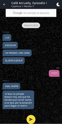 La historia es la siguiente: existe una precuela de este libro ¡qué bien que te estés enterando gracias a mi reseña! jeje de nada. Se encuentra en formato chat y ya sabéis que adoro este formato para las novelas, de ahí que mi novela romántica esté escrita totalmente en este formato, pero eso irá en otra reseña. El miedo restante empieza aquí: