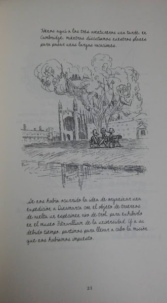 En el libro encontrarás imágenes entrelazadas con texto, ya que es una historia gráfica que nos narra un descabellado viaje en busca de troles por tierras danesas. Me ha parecido diferente a lo que he leído hasta ahora, una historia inédita y especial.
