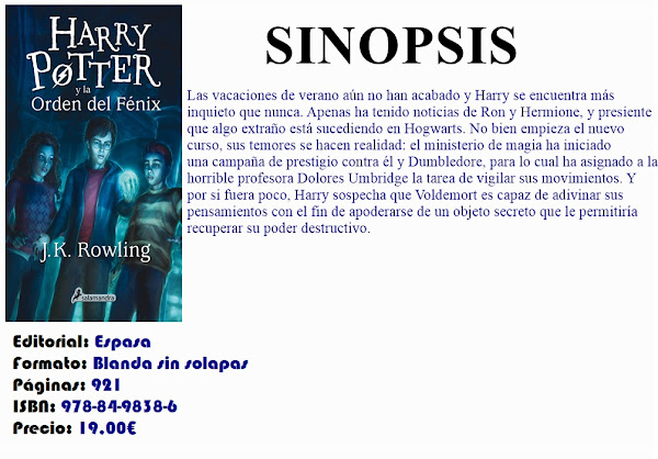 En este quinto libro ya nos encontramos con una trama más adulta, la historia poco a poco se va oscureciendo, se nota que nos adentramos en la recta final. Este libro será un final y un comienzo para nuestros protagonistas, el mundo mágico no es seguro, y se acerca la hora de elegir a que bando querrán pertenecer. Si es cierto que este libro no solo es el más extenso en cuanto a páginas, sino que también es el más lento. Apenas hay aventuras, tales como en otros libros, pero si hay que decir que se da mucha información sobre el mundo mágico y el funcionamiento de sus leyes. Es un libro para leer con calma e ir absorbiendo toda la información que nos va dando.