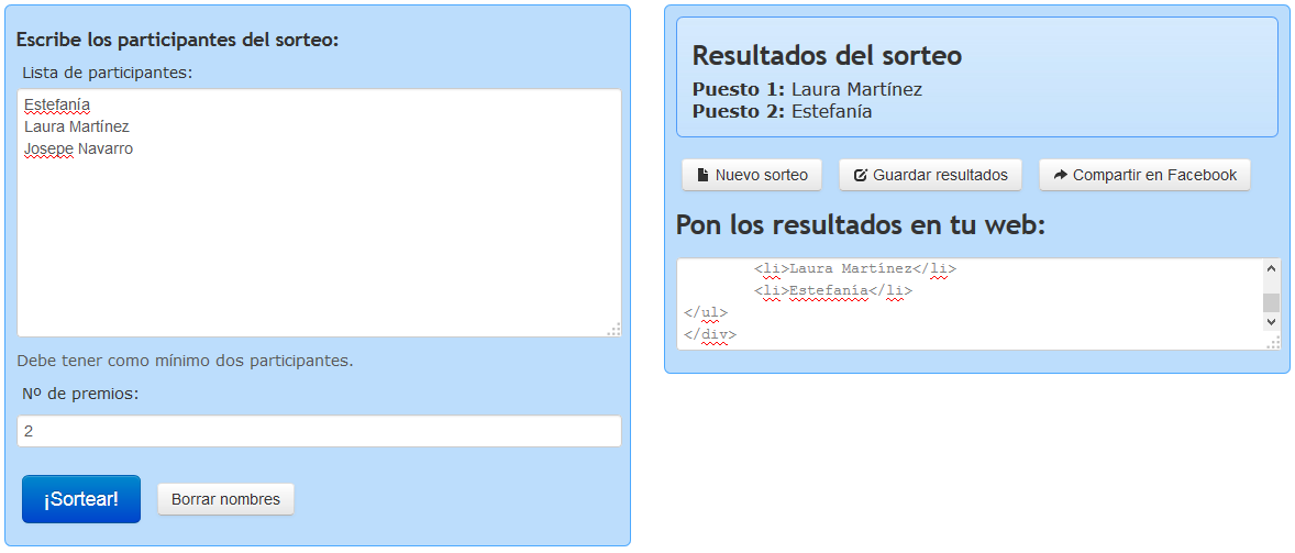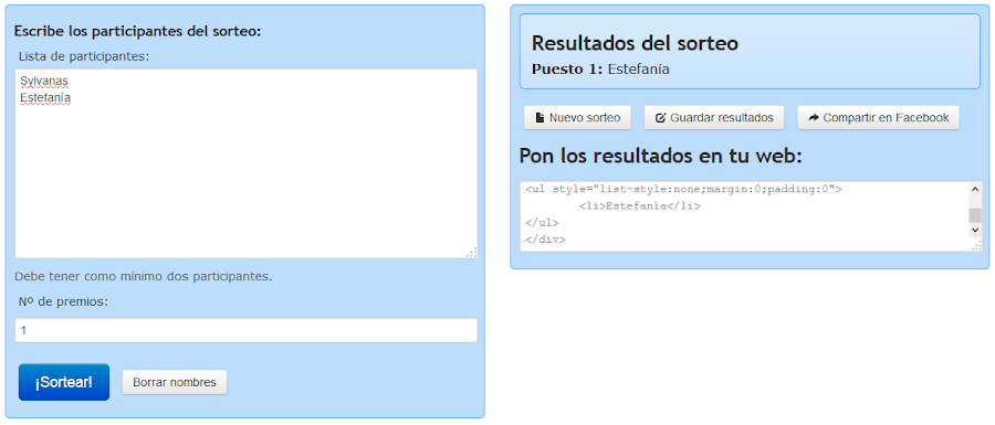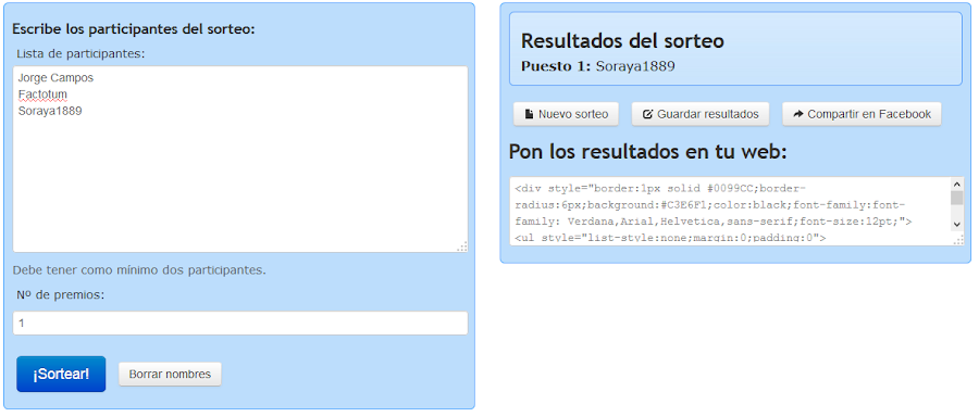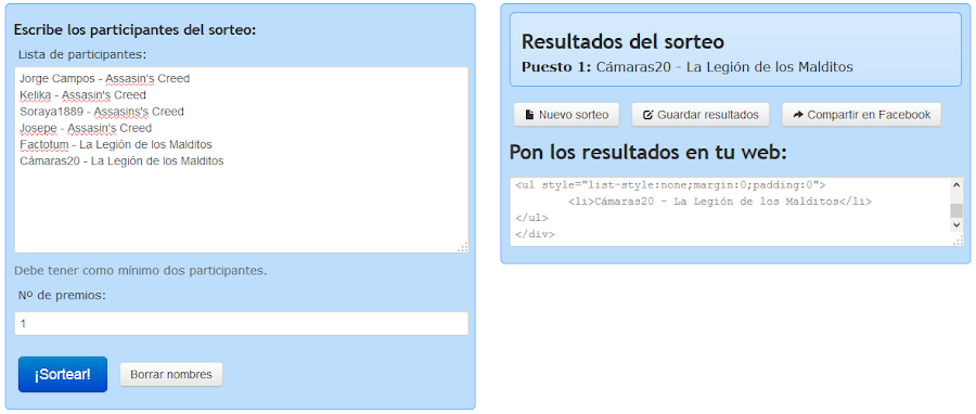 Bueno, vamos a repartir los premios. Como ya dije, lo he hecho por la web Sortea2.