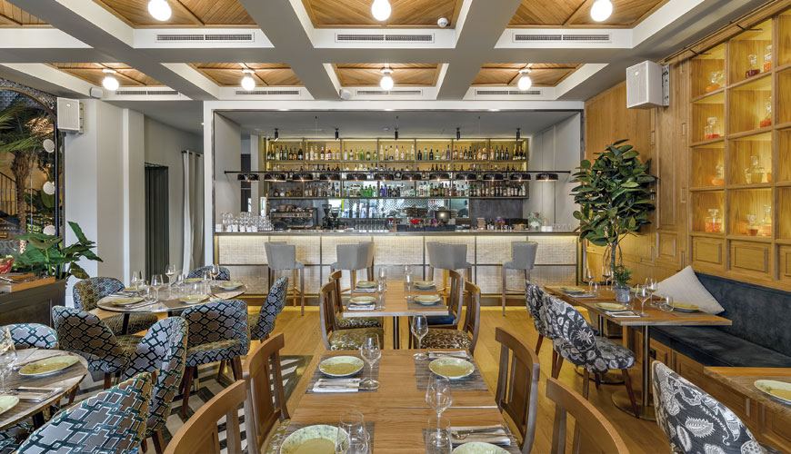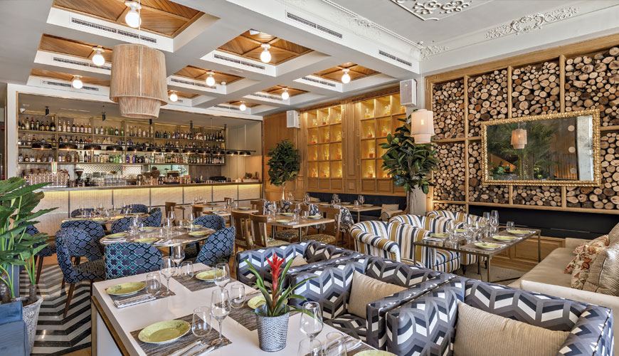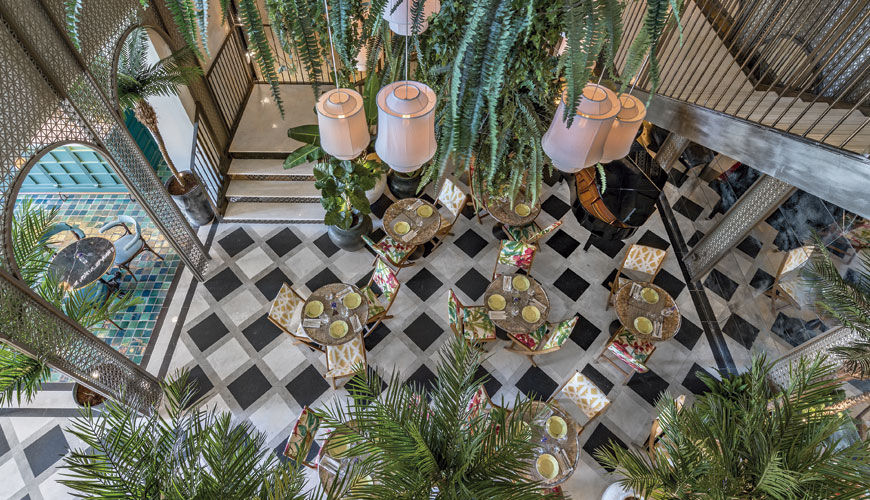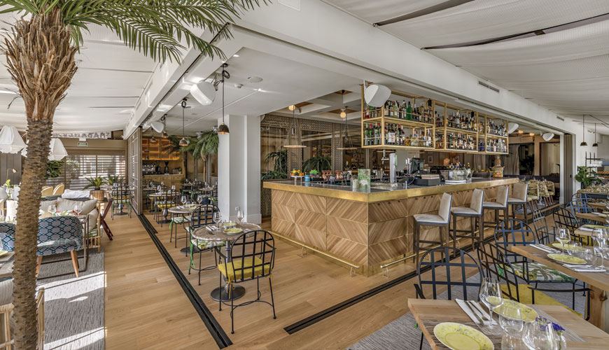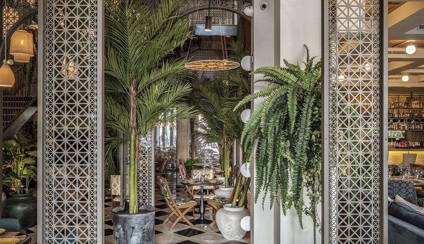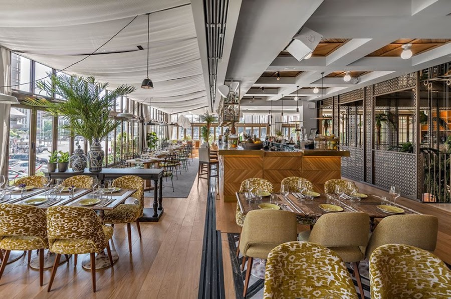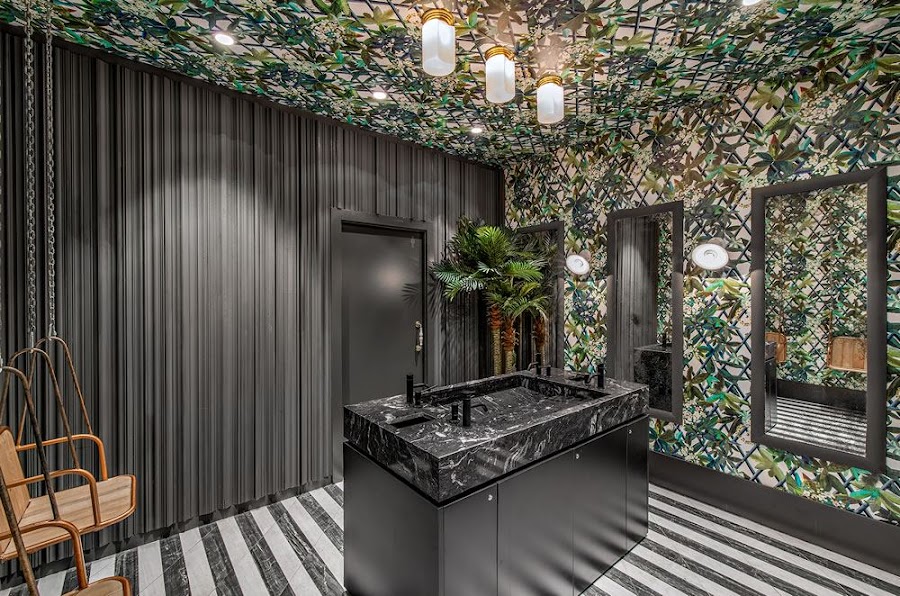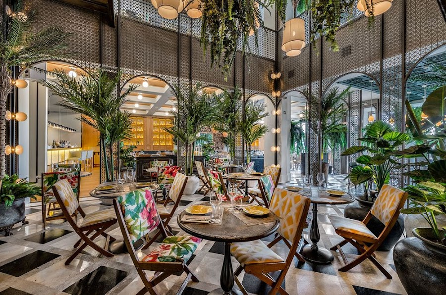 Sin embargo, no puedo negar que el resultado es bien bonito, de esos que nos gustan sobre todo a nosotras. 900 m2 de espacio que giran en torno a un patio de 8 metros de altura inspirado en la arquitectura colonial cubana. En este patio, se reinterpretan las antiguas fachadas de La Habana mediante una malla metálica perforada, una iluminación cálida y una vegetación que recrean el ambiente tropical y el optimismo de la capital cubana.
