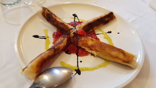 Comenzamos con tres entrantes para compartir, croquetas caseras de morcilla, canutillos de lacón con queso fresco y pastel de verduras y picadillo. Todo estaba fantástico, a mi las croquetas me gustaron mucho, a lo mejor lo que menos el pastel de verduras, aunque no se podía decir que estuviera mal.