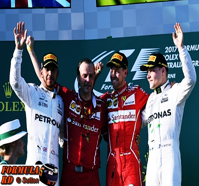 En general, en el GP australiano, Sebastian Vettel comenzó la temporada por lo alto ganando la primera carrera del año, el teutón logró lo que parecía imposible, doblegó a Lewis Hamilton en una carrera inicialmente estratégica y condicionada por problemas de balance en el W08 del inglés. Valtteri Bottas fue tercero, manteniendo una lucha consigo mismo a lo largo de la carrera. Kimi Raikkonen fue 4° y Max Verstappen, quien presionó ligeramente al finés de Ferrari, completó el top 5 en la cita australiana.