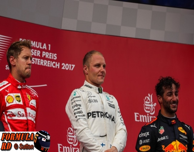 El piloto de Mercedes Valtteri Bottas logró su segunda victoria en la Fórmula 1 en el Gran Premio de Austria, sobreviviendo a la presión que su rival de Ferrari Sebastian Vettel le sometió en los últimos compases de la carrera, mientras su compañero de equipo Lewis Hamilton remontó hasta la cuarta posición.
