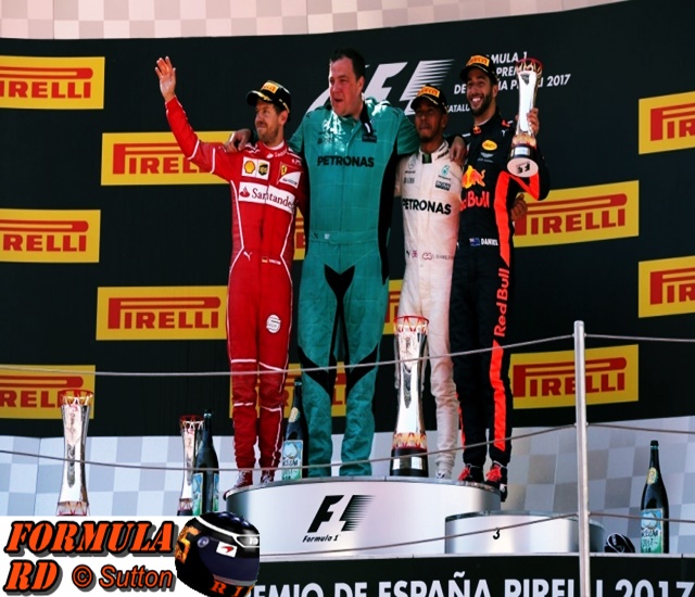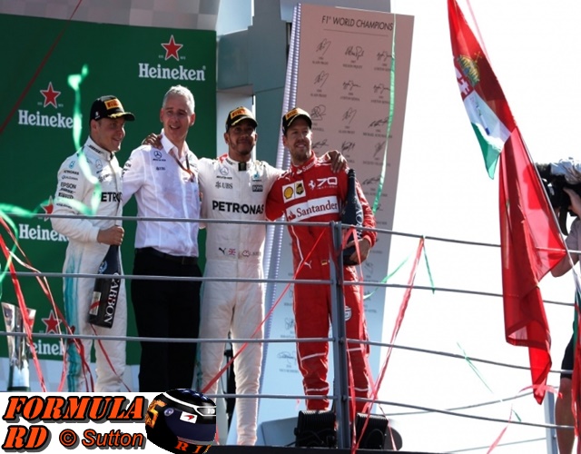 Lewis Hamilton conquistó su victoria número 2 de la temporada y recorta la ventaja de 13 puntos que le llevaba Sebastian Vettel, este último culminó segundo en un GP sumamente reñido entre Ferrari y Mercedes, Daniel Ricciardo completa el podio tras completar una carrera en solitario.