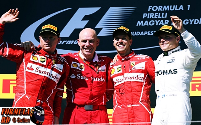 Sebastian Vettel superó un problema con la dirección que se produjo durante toda la carrera para adjudicarse la victoria en el Gran Premio de Hungría, por delante de su compañero de equipo en Ferrari Kimi Raikkonen, aumentando su ventaja en la lucha por el título sobre Lewis Hamilton, quien terminó cuarto.