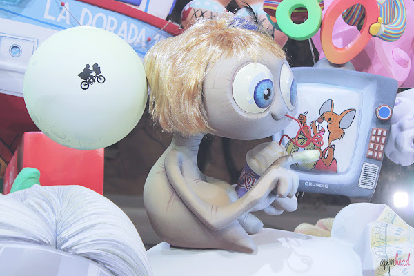 El primer día de ruta fallera (16) nos acercamos por la zona de l`Eixample y visitamos varias fallas, entre ellas el primer premio infantil, de la cual no tengo foto porque estaba llenísima de gente. Salíamos de casa a las 5:30 de la tarde y a la hora de cenar ya estábamos de vuelta. Cena y a ver el castillo a uno de los puentes del río.