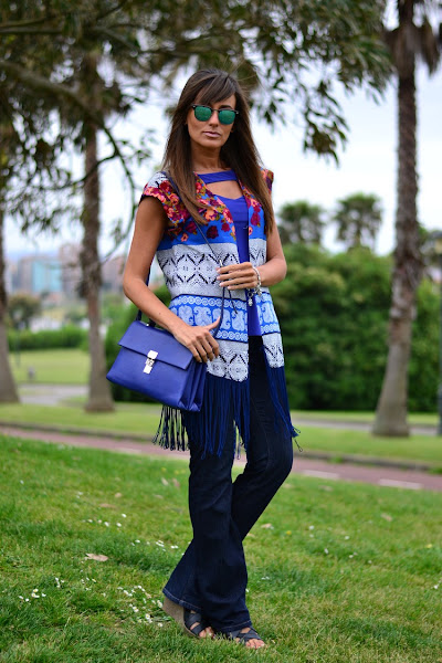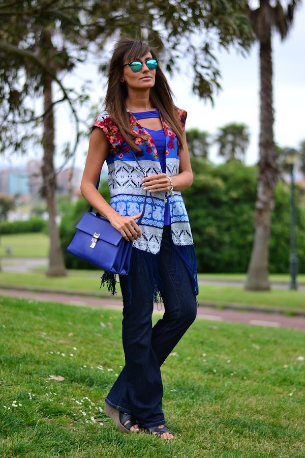 Hoy en día, los looks vintage y retro son parte de las tendencias de la moda. Pues bien, hoy he querido darle un cierto aire retro a mi look. Para ello, me he valido de tres piezas clave: kimono vintage de la tienda online WALKTRENDY, bolso bandolera de PACO MARTINEZ (también disponible online) y fabulosos jeans campana y tiro alto de SALSA.