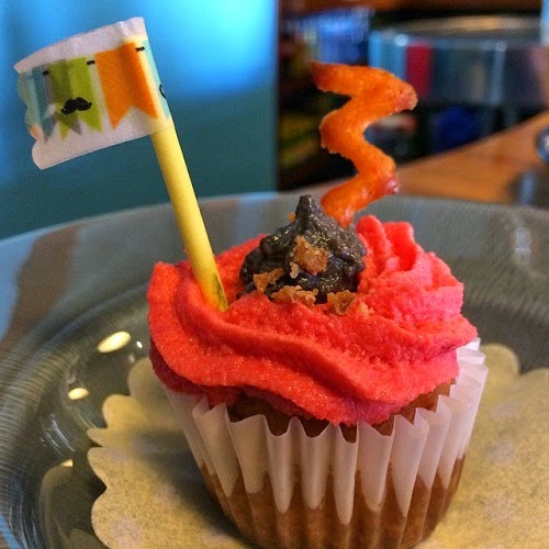 "Isto non é o que parece" ,consistente en un cupcake de merluza del pincho con una crema de langostinos rematada por una galleta de pimientos del piquillo, del Hotel AG Porcillán.
