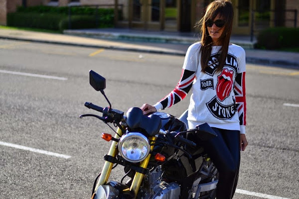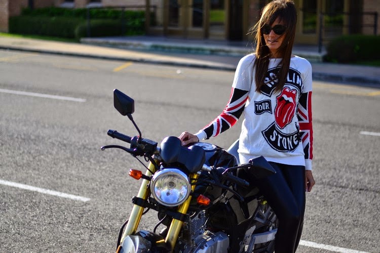 Hoy he dejado apartados los vestidos y los tacones para sacar al asfalto en este Puente de Mayo mi lado más canalla y romper con mi estética habitual con un estilo inspirado en una de las bandas de rock más grandes de todos los tiempos, gracias a este jersey con su inconfundible logotipo (un gesto global e irreverente, directo y sencillo, con un mensaje universal). ¿Quién no ha sacado la lengua alguna vez para provocar?