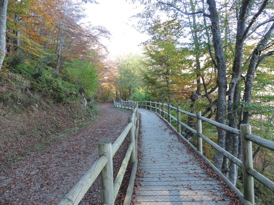 El día era perfecto, despejado, con una temperatura muy agradable. El bosque, en todo su esplendor otoñal, impresiona a ambas orillas del camino. Los distintos matices de verde, amarillo, naranja, ocre, marrón, de las hojas de las hayas conmueve los sentidos.