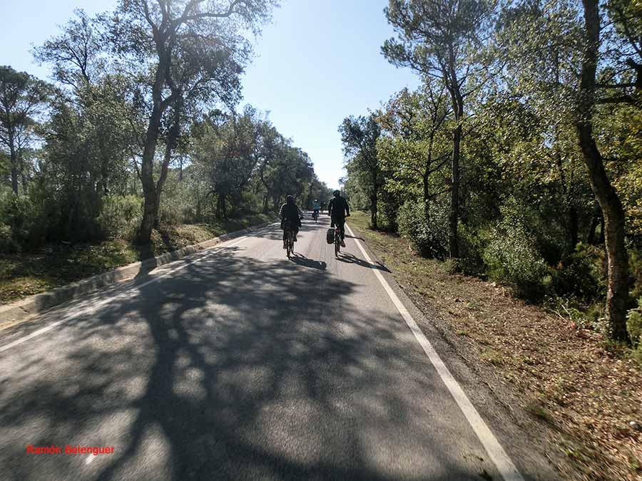 La ruta transcurre entre campos de cultivo y bosque mediterráneo, en el límite de las comarcas de la Selva y el Gironès. Sigue el trazado del sendero de pequeño recorrido con el nombre de “Ruta de les Ermites de Caldes”. La ruta pasa mayoritariamente por pistas de tierra en más o menos buen estado, hay algunos tramos por carretera de tercer orden es.