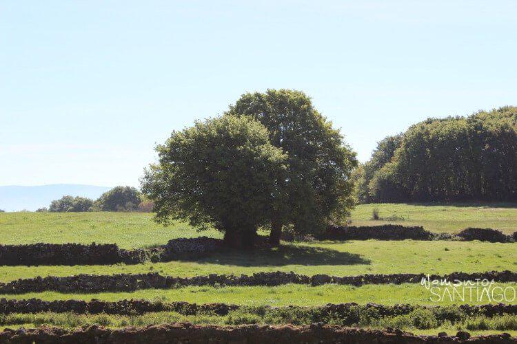 Desde la casa de Carmen a la aldea de Mercadoiro existen multitud de paisajes que definen a la perfección el paso del Camino Francés por tierras gallegas.Las sendas confluyen en corredoiras, esos estrechos pasos entre muretes de piedra que definen los prados, que te envuelven formando túneles que refrescan ideas y reverdecen tu espíritu de aventura.