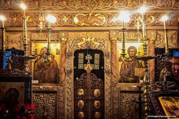 El iconostasio, que es el equivalente al retablo del altar mayor en las iglesias católicas, está decorado con pan de oro en su totalidad dándole una riqueza excepcional.