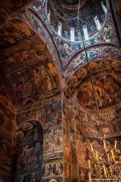 Como todos los monasterios ortodoxos cada palmo de sus paredes interiores y del atrio de entrada se encuentra cubierto de frescos policromados.