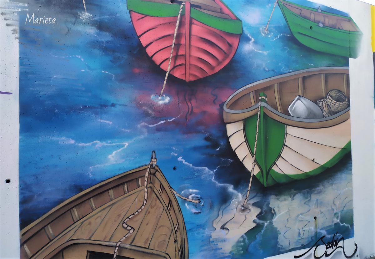 Adrián Lomba, más conocido comoSedon (@behindthemusgo) es un joven artista vigués muy reconocido. Ha realizado en esta ocasión todo un homenaje a la pesca artesanal. En otra parte del muro también podemos encontrar un grafitti con su firma.