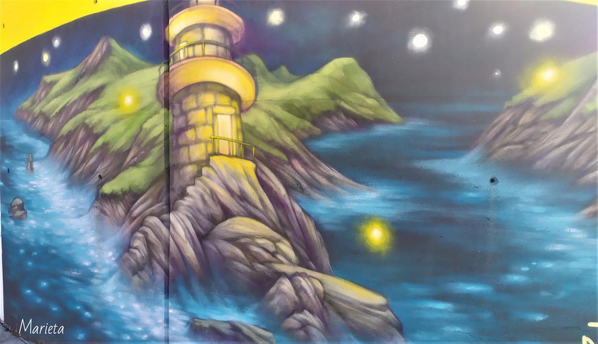 El coruñés Doctor Toy(David Brey), artista visual especializado en el diseño mural gráfico ha representado magníficamente la luz de las Cíes, tanto la de los faros como la producida por el efecto de la noctiluca.
