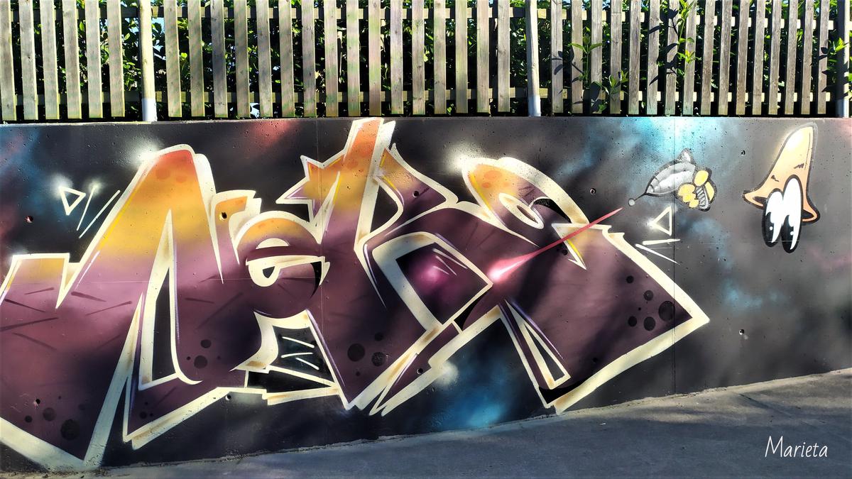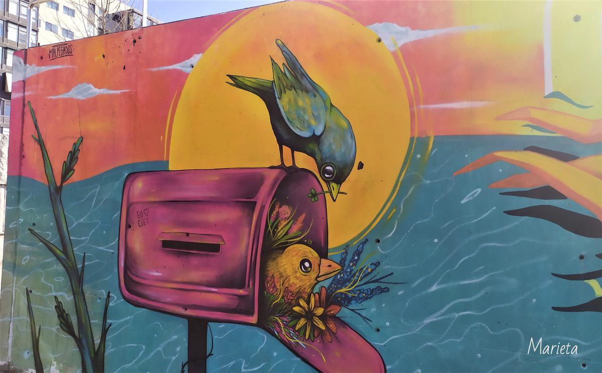 Pipo Zu (Felipe Zúñiga) en redes Malpegados, es un artista chileno y todo un referente internacional del arte urbano. Esta es su preciosa y colorida aportación al certámen.