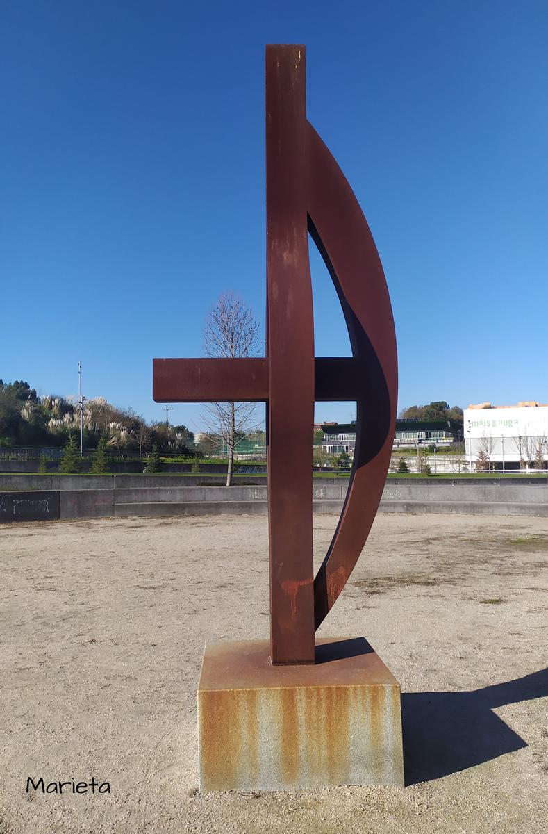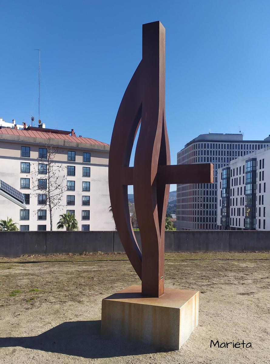 Dejamos atrás la Rúa do Limpiño y continuamos el recorrido por el parque Nelson Mandela hasta encontrarnos con una escultura en acero obra del artista Pedro Dobao.