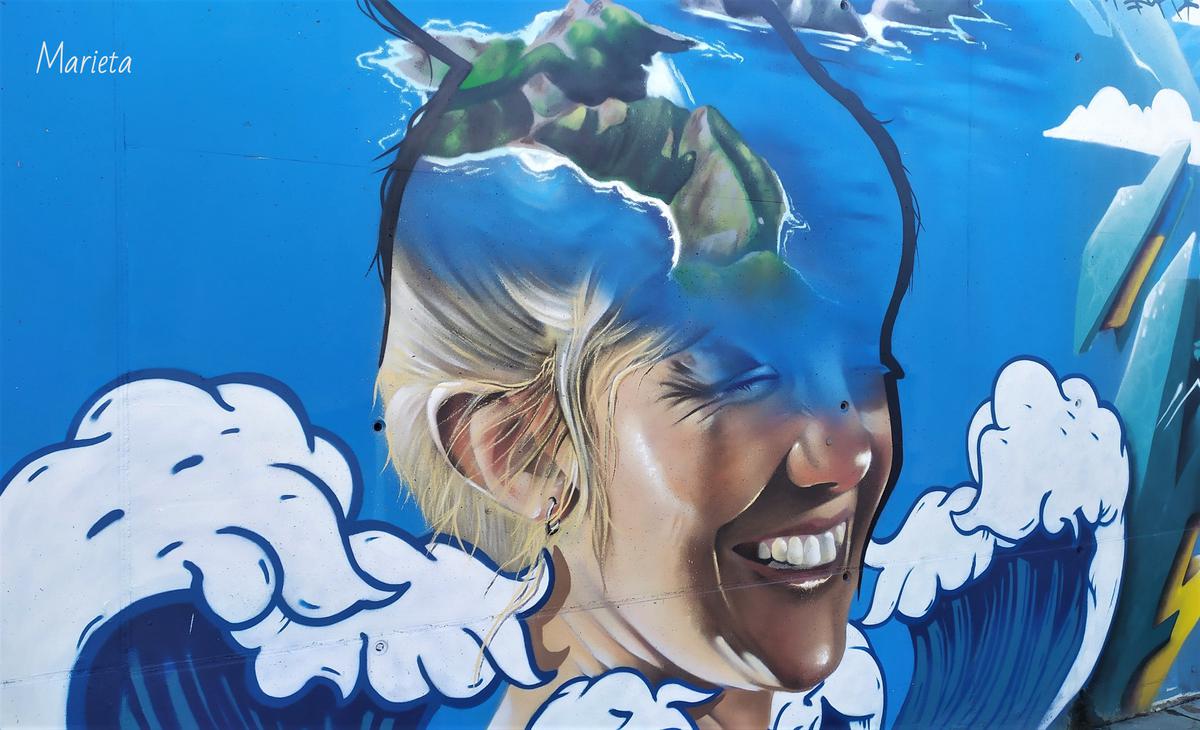 Otra parte del parque ha sido decorada por la artista Iria Blanco Barca en dos actuaciones separadas en el tiempo: la primera de ellas en 2017 llenando de vida los muros con motivos de mar y surf, y en la segunda fase retratando a la gente del barrio y empapando de literatura, música y colorido los espacios, acompañándolos también de sugestivas frases.