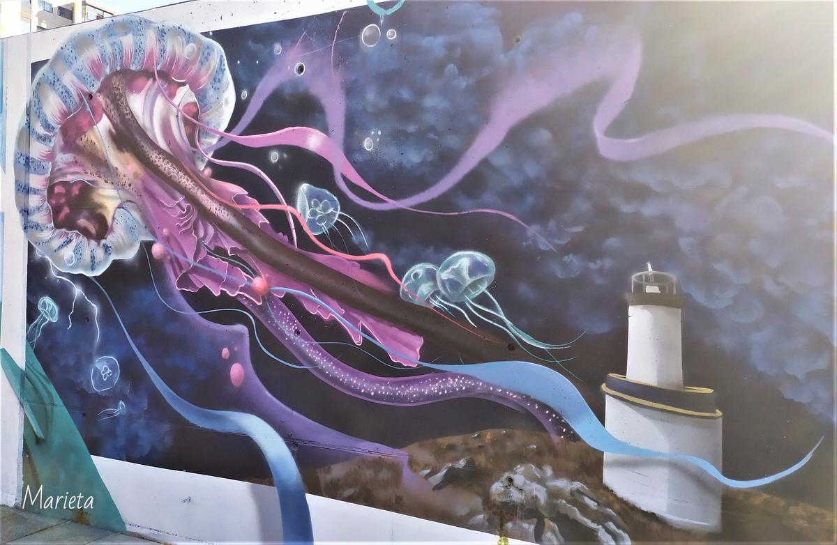 El artista lugués Rubén Paz pertenece a Trece Trazos, un colectivo de grafitteros al más alto nivel. Ha pintado para el certamen esta espectacular medusa gigante.