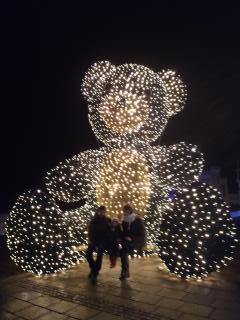 No encontramos ningún Papa Noel pero si un gigante oso de navidad repleto de luces.