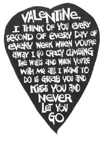 Mi amor: Pienso en ti cada segundo de cada día de cada semana. Cuando no estás me vuelvo loco subiéndome por las paredes, y cuando estás conmigo todo lo que quiero hacer es cogerte y besarte y nunca dejarte ir.