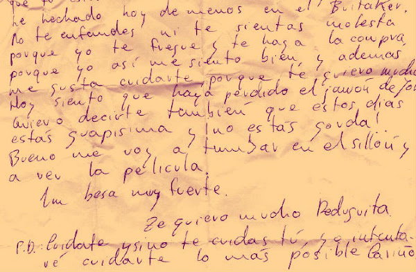P.D. : Cuídate y si no te cuidas tú, yo intentaré cuidarte lo más posible, cariño.