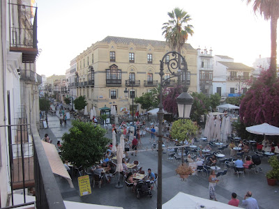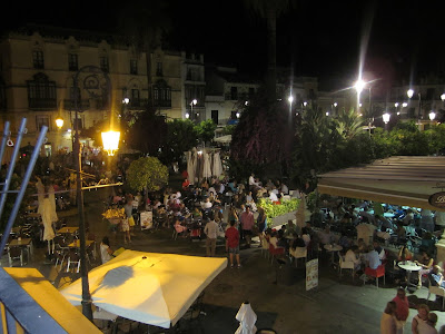 Sanlúcar es un pueblo pequeño pero lleno de gente en vacaciones, bares habrá no sabría decir...creo que es el sitio donde he visto mas bares y restaurantes, concretamente por los alrededores de la Plaza del Cabildo, donde teniamos el hotel, justo en el centro, de hecho la foto de la plaza la hice desde mi habitación.