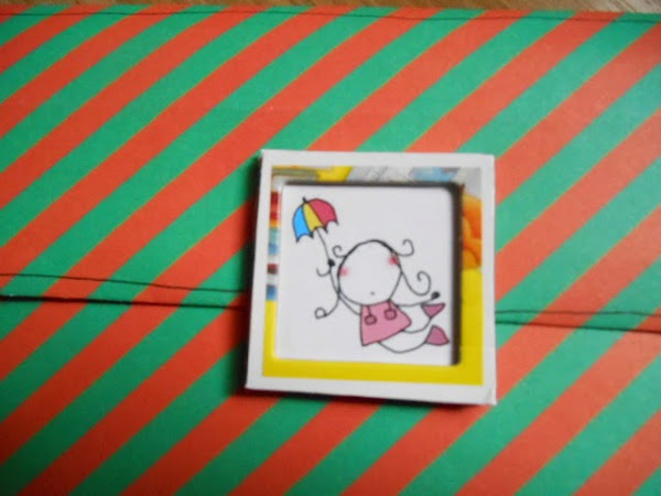 *Como presentación le he hecho un sobrecito que se cierra con una imagen de Misspink, enmarcada con un sobrante donde vienen fijadas las piezas de un juego de mesa