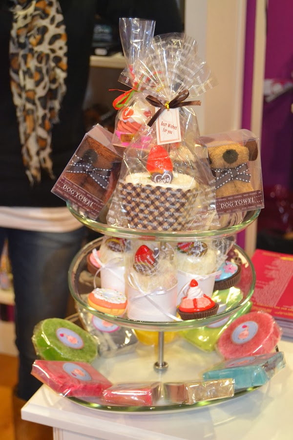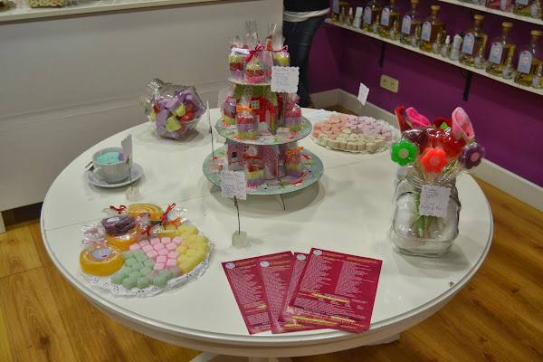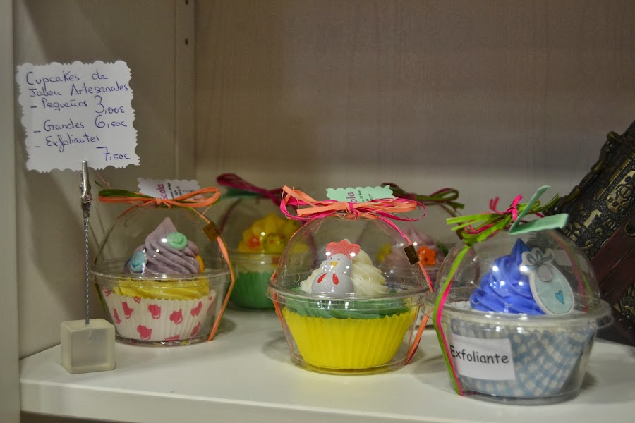 jabones con formas, cupcakes exclusivos de jabón y hechos a mano, piruletas de corazón de jabón, jabón en láminas con estuche, toallitas con forma de rosa, tarta, magdalena o perrito, esponjas con jabón + aceites...