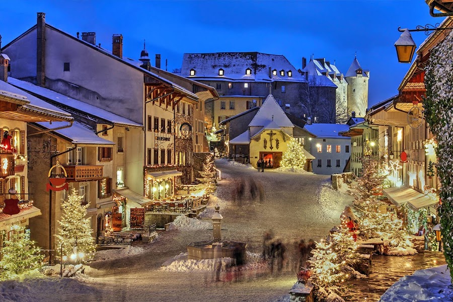 Quizás uno de los pueblos más bonitos de Suiza sea Gruyeres famoso, no sólo por sus quesos, sino por el encanto con el que se viste en Navidad.