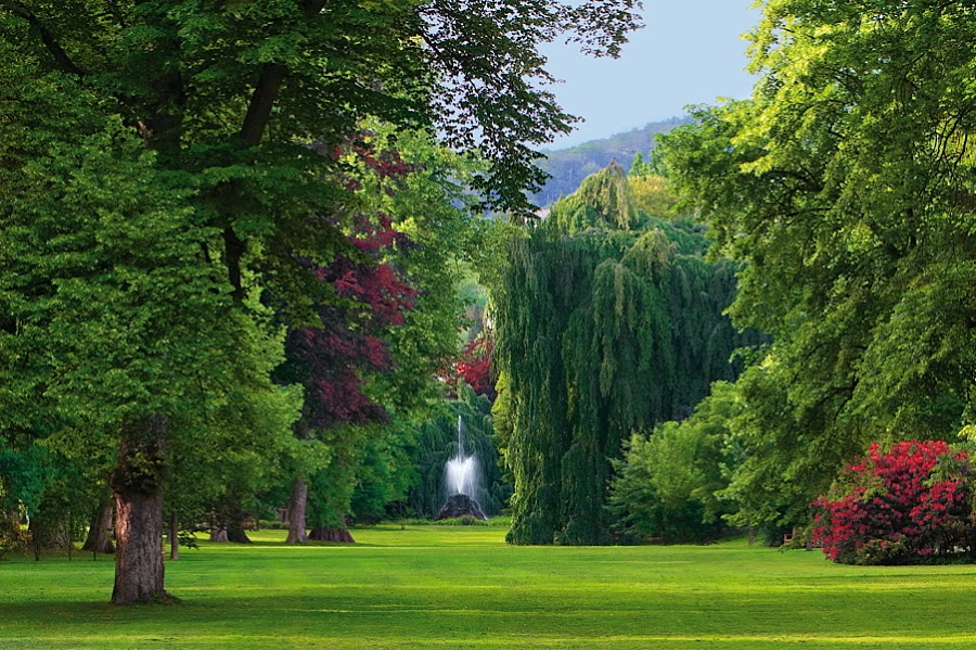 Jardín inglés de 2, 3 km de longitud y con más de 300 especies de árboles y con pequeños puentes sobre el río Oos.