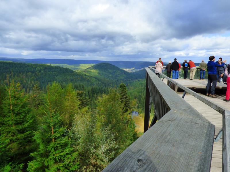 Plataforma de observación. Para llegar hay que hacer un sendero a pie entre bosques. Muy buenas vistas. Desde el centro de visitantes Kniebis está a solo 1,5 km de Ellbachseeblick, el camino está muy bien señalizado. Hay un camino sin barreras hacia el mirador por si lleváis cochecito de niño o silla de ruedas. de ruedas.