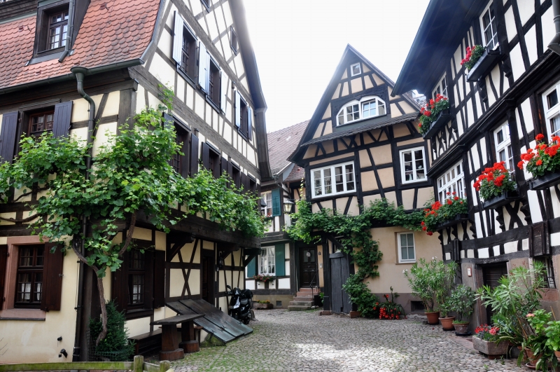 El centro de este bello pueblo francés es gótico medieval. Las casas son las típicas del entramado de madera típico de la región de Alsacia. Destacamos: