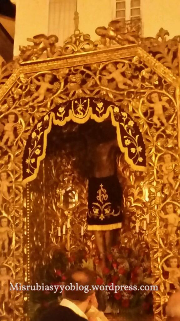 Aquí no hay tanta tradición de que haya costaleros ,se que hay alguna cofradía pero ,lo transportan con un coche o motor a ruedas ,eso sí conducido por una persona.